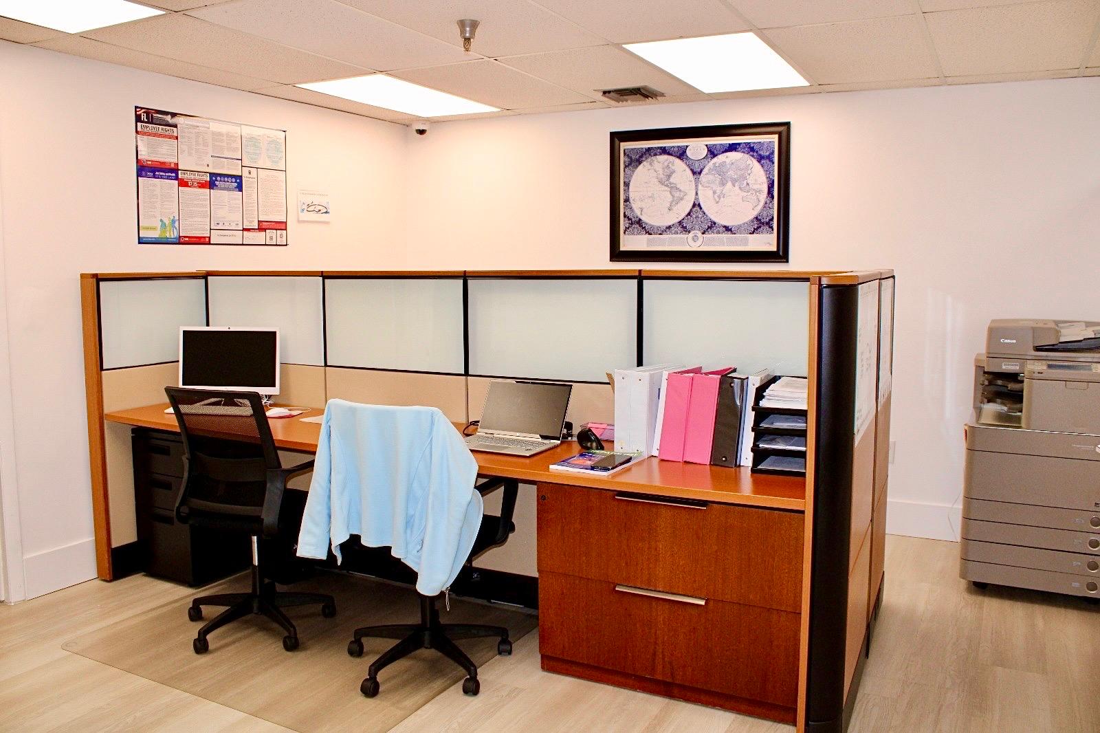 - Desks and office chairs